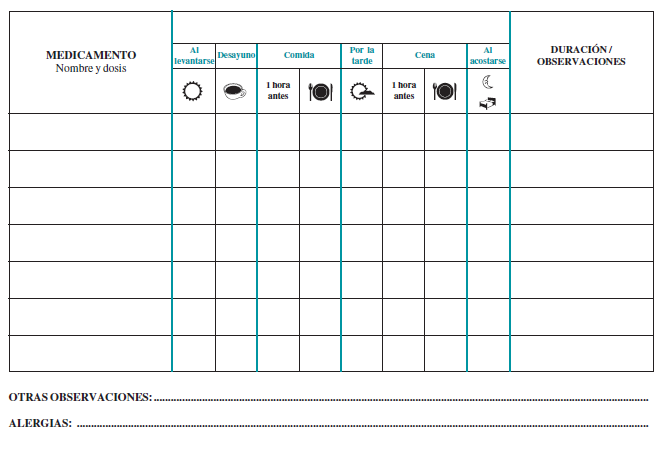 Es muy importante que lleves siempre, y especialmente cuando solicites asistencia sanitaria, un listado actualizado de todos los medicamentos que tomas, incluyendo: